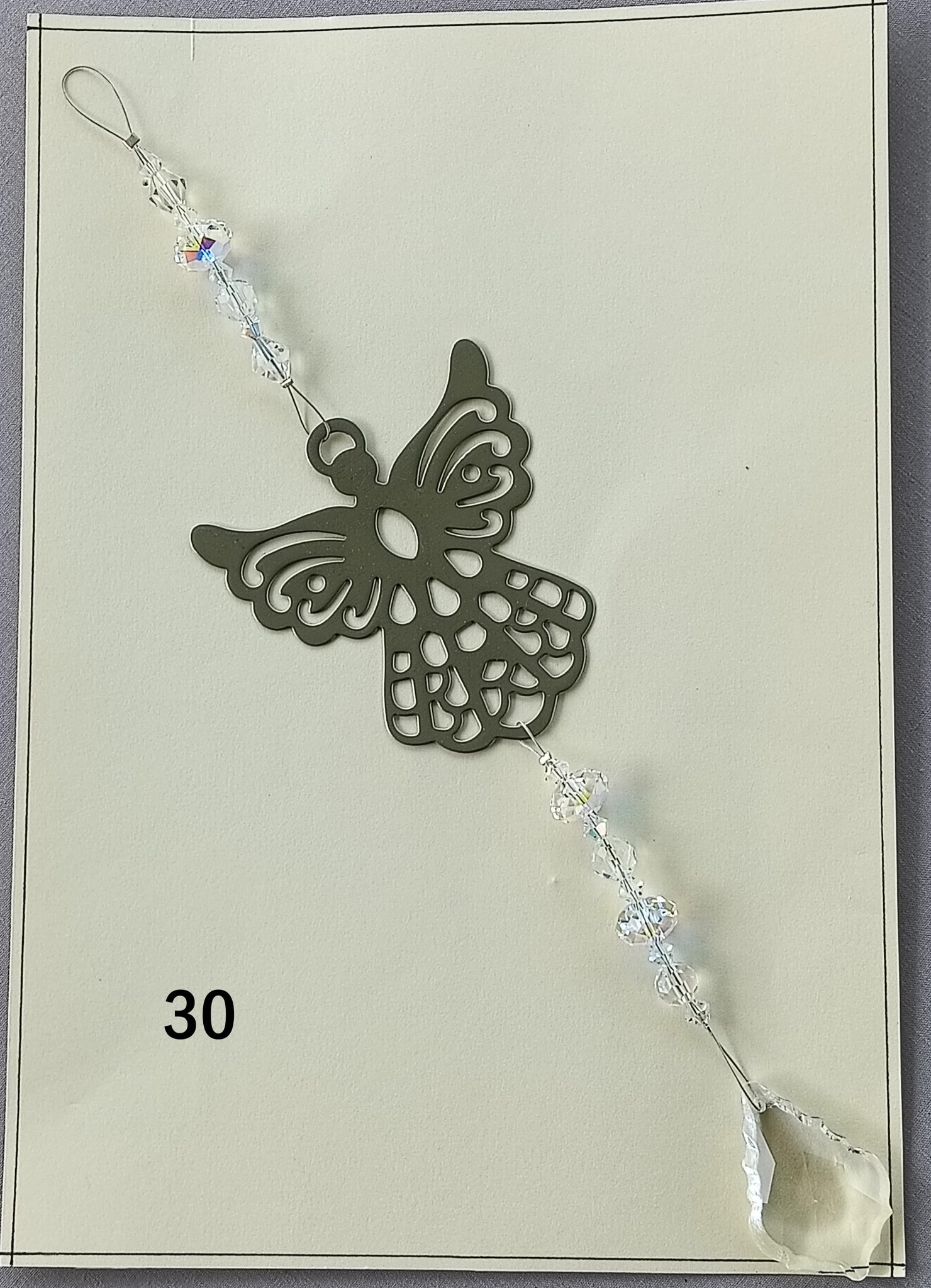 Our Limited Edition suncatchers are created by our Members using a combination of salvaged crystals and purchased elements including Swarovski crystals, threaded onto tiger tail wire and secured with crimps. Each suncatcher is unique, please refer to the numbers on each photo for actual item on sale.